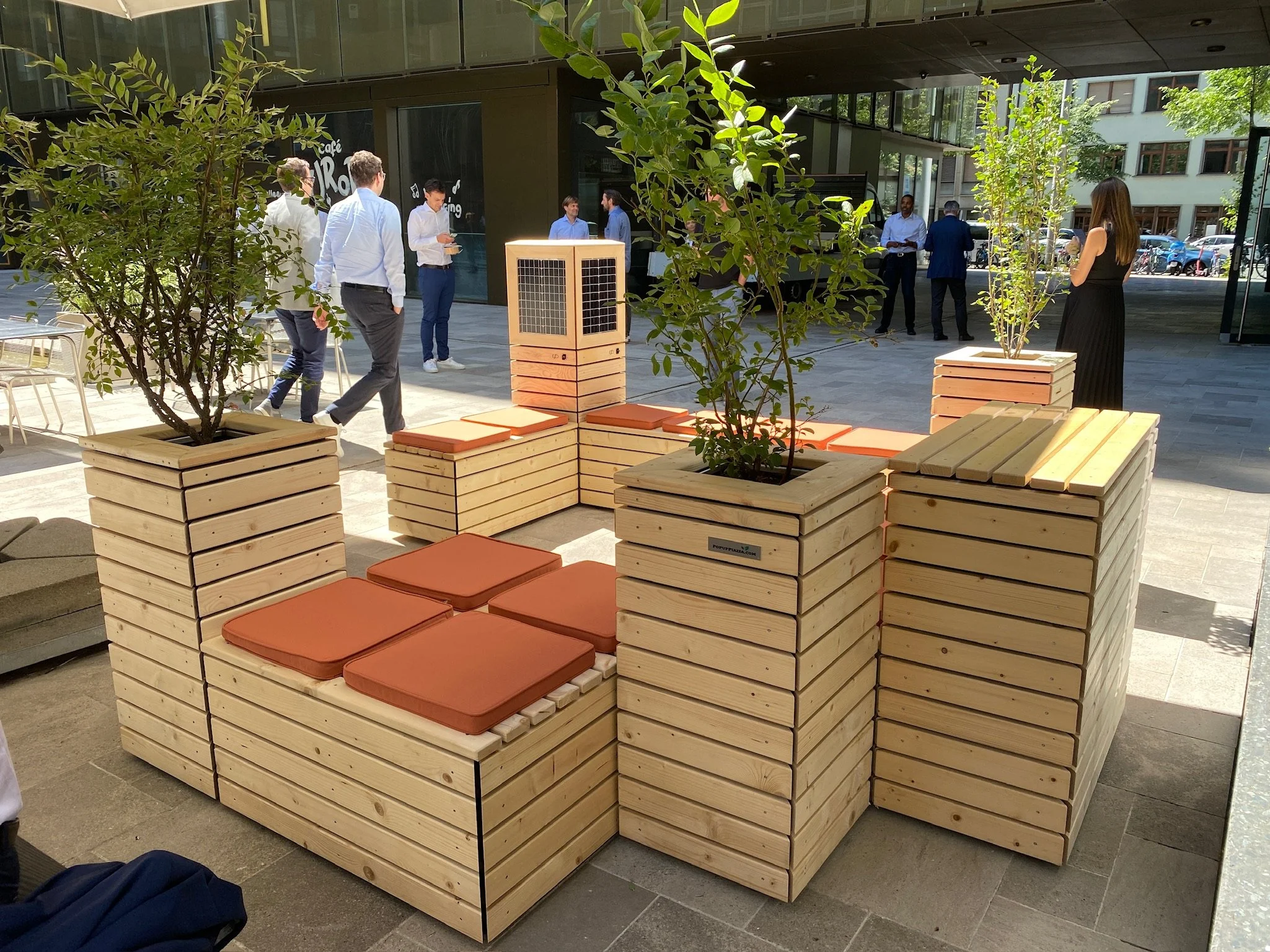 „Über den Sommer haben wir unseren Mitarbeitenden, Studierenden und Spaziergängern eine kühle Aufenthaltsmöglichkeit im Freien angeboten, welche gerne genutzt wurde. Als "Cool Spot" mit Baumschatten, Wasser- und Biodiversitäts-Modul konnte die PopUp Piazza nachweislich die hohen Temperaturen lokal senken. Die Sitzgelegenheit aus Holz und die neuen Module haben die Pausen gemütlicher gemacht und zu einem spontanen Austausch zwischen unterschiedlichen Nutzenden geführt.“