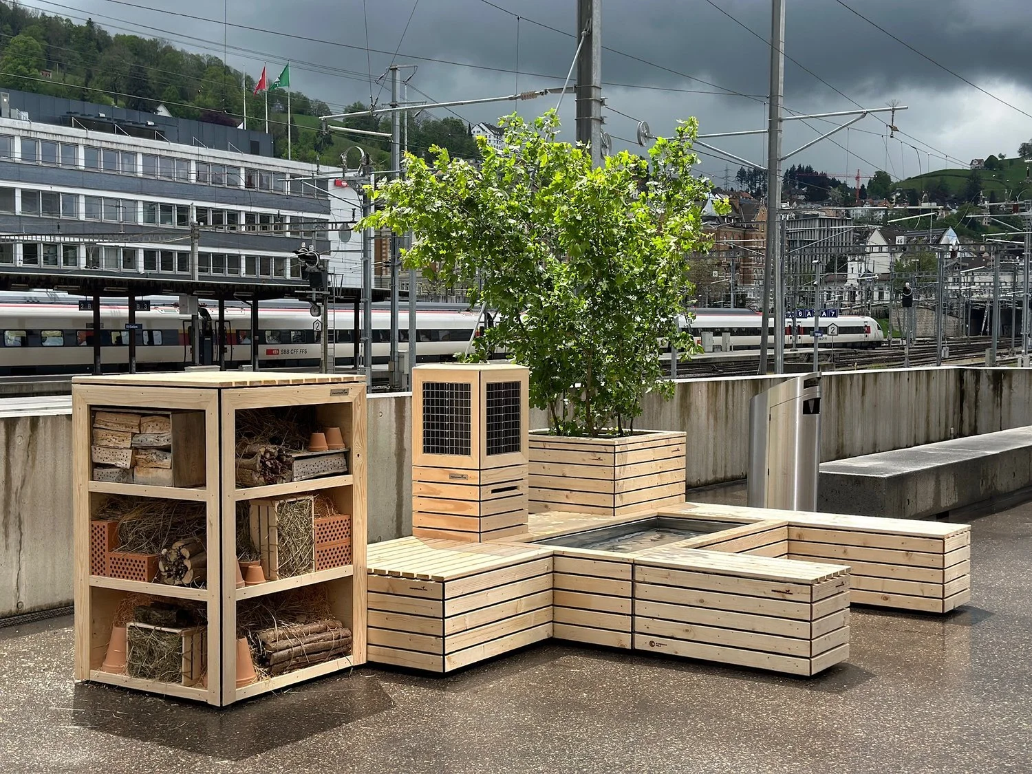 „Über den Sommer haben wir unseren Mitarbeitenden, Studierenden und Spaziergängern eine kühle Aufenthaltsmöglichkeit im Freien angeboten, welche gerne genutzt wurde. Als "Cool Spot" mit Baumschatten, Wasser- und Biodiversitäts-Modul konnte die PopUp Piazza nachweislich die hohen Temperaturen lokal senken. Die Sitzgelegenheit aus Holz und die neuen Module haben die Pausen gemütlicher gemacht und zu einem spontanen Austausch zwischen unterschiedlichen Nutzenden geführt.“